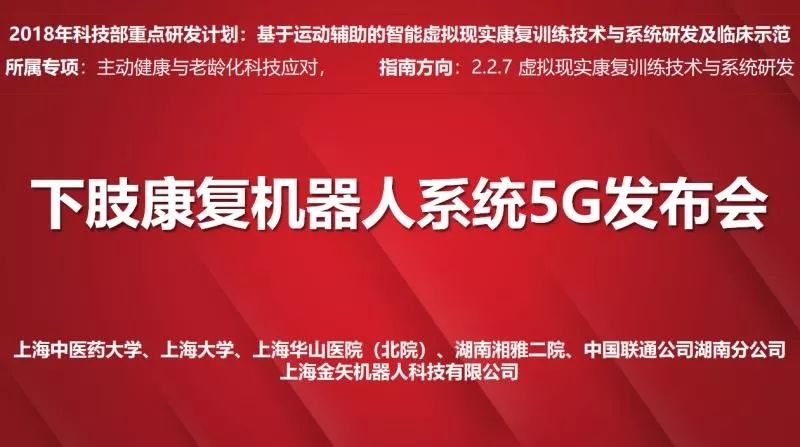 在今天10月25日10:50-11:20由上海中医药大学徐建光校长牵头,上海机器人产业技术研究院提供技术支持的国家重点研发计划——基于5G技术多点协同远程康复机器人诊疗技术在此次年会上发布。本次发布联合普陀区政府、jiuyou.com九游(中国)机器人有限公司官网、上海华山医院(北院)、湖南湘雅二院、中国联通公司及上海金矢机器人科技有限公司,开展多点协同5G远程康复机器人诊疗项目发布及现场展示。