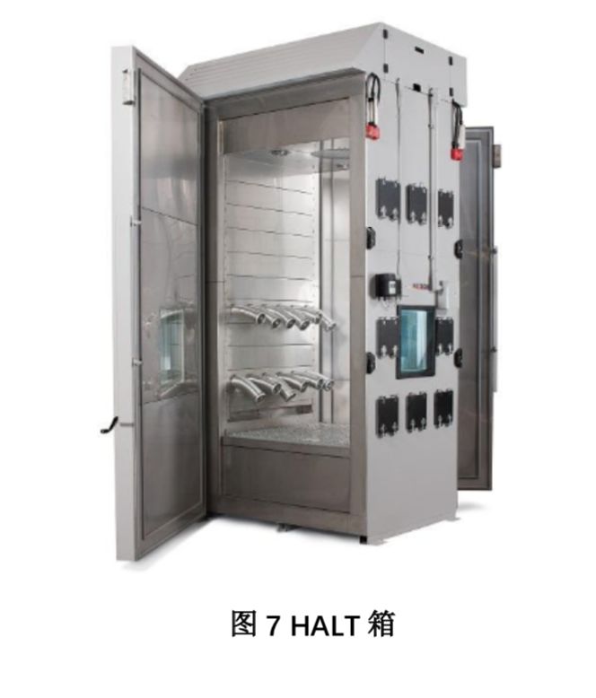 HALT是高加速寿命试验,又称为可靠性强化试验(RET),在产品的设计阶段,通过系统地施加逐步增大的环境应力和工作应力,激发和暴露产品设计中的薄弱环节,找到产品的工作极限和破坏极限,通过对试验过程中出现的故障进行定位分析和失效进行机理分析,不断改进设计和工艺,提升产品耐环境能力和健壮性,提高产品成熟度和可靠性,缩短产品研发周期和加快产品上市。HALT方法是为了提高产品的可靠性,而并非为了评估产品的可靠性。