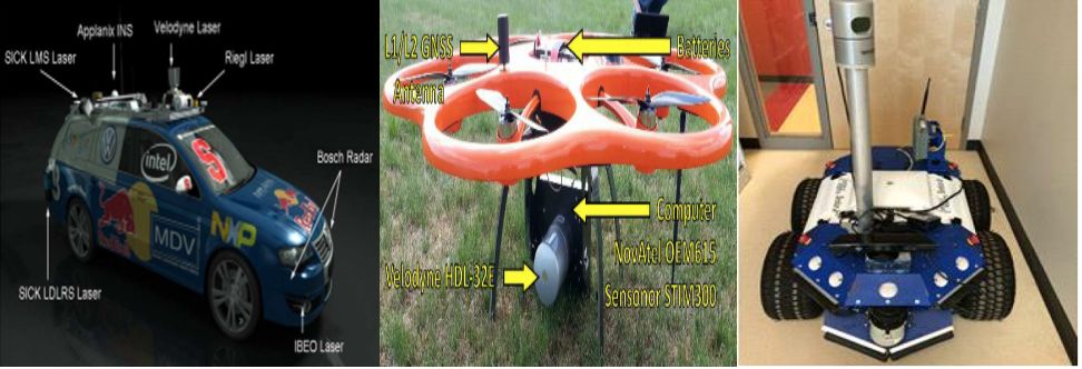 通过调研及查找相关文献,目前激光雷达和全景相机组成系统主要应用于SLAM、地图构建、定位、导航、路径规划等研究领域。该系统可以实现无人驾驶三维环境识别重建、机器人jiuyou.com九游室内外高精度地图构建和跟踪导航,能够将外界环境颜色信息和深度信息集于一体,可大大缩小识别误差和信息错误丢失率,如下分别为装有该系统的无人车载实物图及其实现的地图构建效果图。