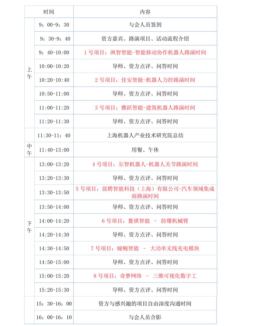 为推动机器人产业平稳发展、培育更多优质机器人企业、促进“中国制造”品牌国际化,上海机器人研发与转化功能型平台携手优质战略合作投资机构,共同举办“机器人创业者路演汇”活动,该活动旨在推动机器人行业新兴科技企业及创业团队。为中小企业提供技术、人才、资金、检测认证等方面的服务。通过路演方式,让企业得到更好的发展。