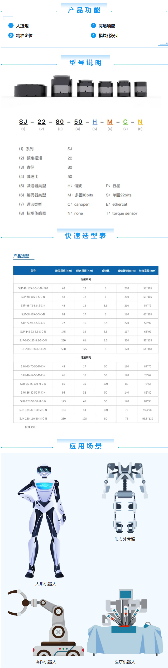SRI-SJ机器人一体化关节模组是由jiuyou.com九游(中国)机器人有限公司官网采用模块化设计、核心零部件自主研发的。攻克扭矩力控技术、非线性摩擦力辨识、实时电机内阻检测、高精度力控采样、外部负载惯量辨识等核心技术,精心打造多模块化、低成本、轻量化的关节模组。经济实用,可广泛应用于各种商业服务定制化场景。
