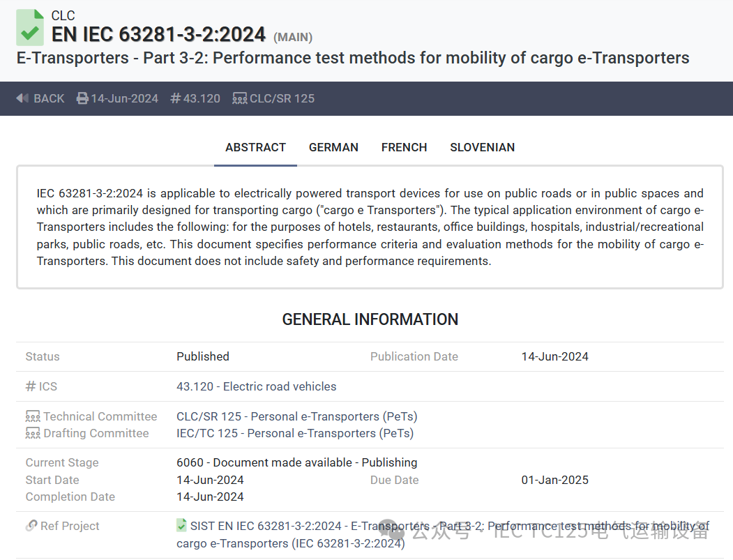 在全球化浪潮下,标准的统一与协调对于行业的可持续发展具有深远意义。IEC/TC125 四项标准的发布,为电气运输设备这一新兴品类提供了清晰的术语定义和明确的技术规范、测试方法,保障了产品的安全和质量。后续,在 IEC/TC125 标准的引领下,电气运输设备将打破地域壁垒,加速全球市场的融合与流通,促进产业链上下游的高效协同,激发企业的创新活力,推动技术不断迭代升级 ,以更卓越的性能、更环保的理念、更智能的特性,开启全球绿色交通、智慧物流的行业发展崭新篇章。