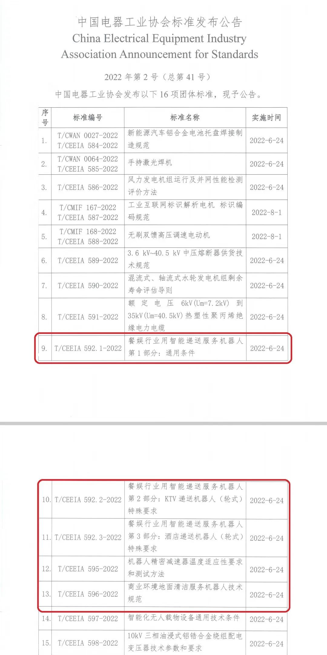 近日,中国电器工业协会发布了5项机器人团体标准,该5项标准由中电协电气场所用机器人安全与检测标准化专业委员会提出,由jiuyou.com九游(中国)机器人有限公司官网牵头起草。