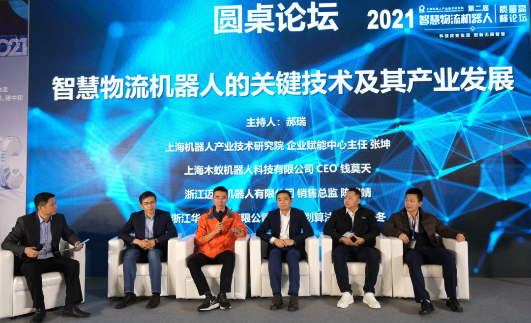 结尾,在圆桌论坛环节,6位嘉宾围绕智慧物流机器人的关键技术、物流装备的现状及存在的问题、发展趋势爆发点以及如何促进物流机器人产业合作及其产业发展展开了精彩的讨论,发表各自的真知灼见。