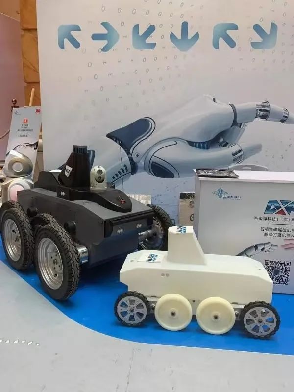 活动现场,来自机器人功能型平台的帝蛮神(上海)科技有限公司带来的全地形三维移动机器人智能化,具备自主行走、自动避障、自动扫描检测、自动上传数据、自主报警等功能,集多种重要技术于一身,它采用行星摆臂轮结构和四轮八驱结构有效实现面向复杂地形的自适应,并结合相应的图像处理、气体检测、温度检测、噪声检测等,完成巡检任务。
