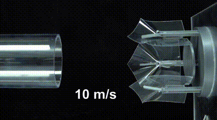 受此启发,研究人员又对该结构进一步做了调整,「超可调双稳态结构」具有很有很大的空间,响应产生的力区间可以差出几个数量级!除了能像凤尾花一样对轻微触碰做出快速反应外,还可以设置为不敏感状态,即使受到重击也还能保持原样。